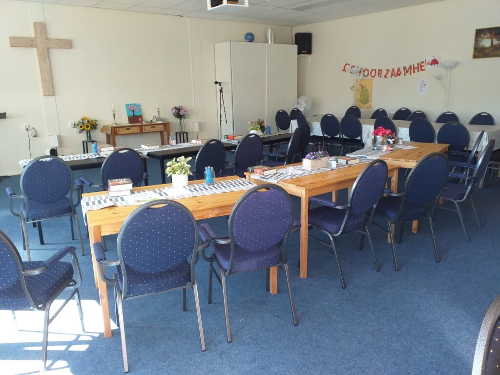 Iedere zondagmorgen om 10 uur hebben we in deze zaal een samenkomst.
